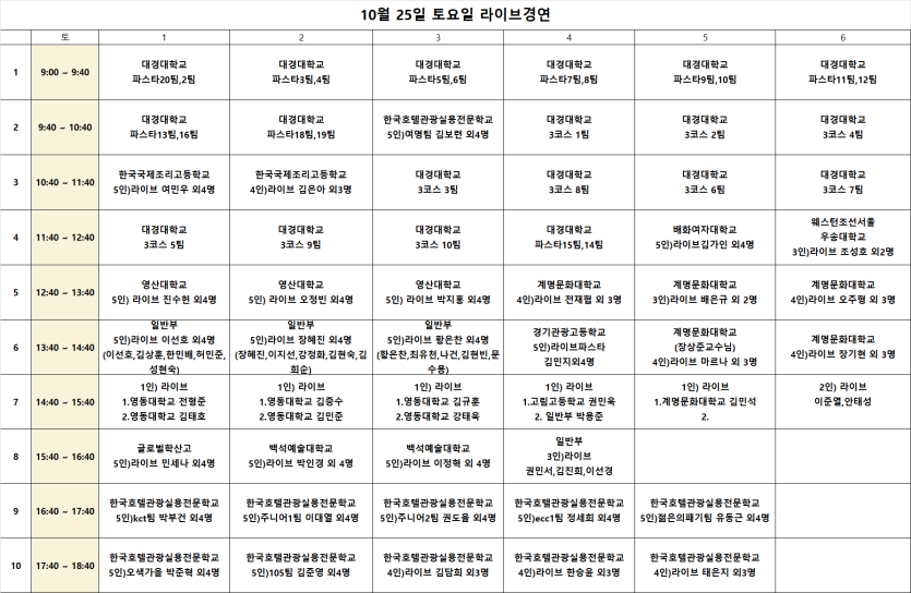 - 다음글2025 월드 컬리너리 쉐프컵 코리아 대회 참가자 경연 스케줄표 3차 수정본 (10월23일오후5시) 25.10.22