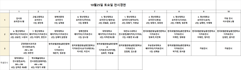 전시경연의 경우 오전/오후 구분없이 도착시 안내를 받고 참가하시면 됩니다.