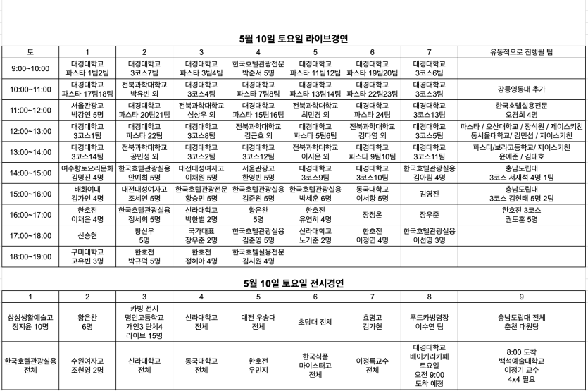 2025 대한민국 챌린지컵 국제요리 경연대회 현장 참가자 스케줄표 - 5차 수정본
